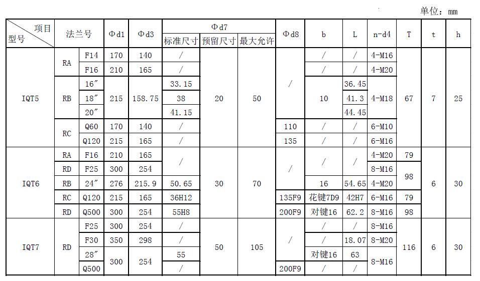 IQT5~IQT7系列法蘭連接尺寸
