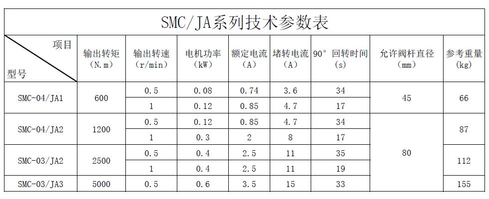 SMC/JA系列閥門電動裝置是部分回轉型閥門電動裝置,適用于球閥、蝶閥等類型閥門以及電動風門。其結構形式為組合式,由SMC多回轉電動裝置與JA部分回轉減速裝置相組合而成。該系列產品所適用的環境條件、溫度、濕度、海拔、防護等級均能達到SMC相應規格產品的水平。