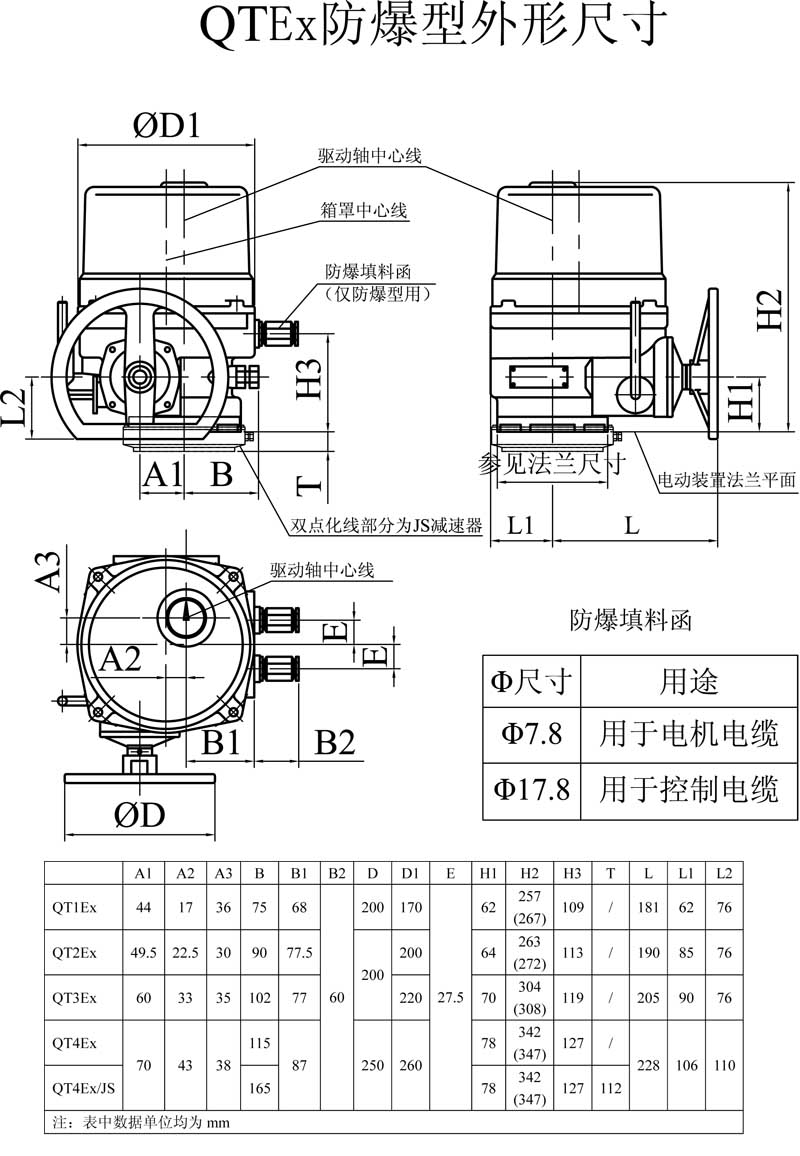 QT1QT4型部分回轉(zhuǎn)閥門電動(dòng)裝置是我公司最新研制的換代型產(chǎn)品。適用于控制蝶閥、球閥、旋塞閥等做90°回轉(zhuǎn)的閥門。該產(chǎn)品替代同規(guī)格的QB系列產(chǎn)品,體積小、重量輕、具有高效率、高可靠性、高防護(hù)性能、低噪音等特點(diǎn)。可現(xiàn)場(chǎng)操作,也可遠(yuǎn)距離控制。可廣泛用于石油、化工、發(fā)電廠、水處理、造紙等各行業(yè)。該產(chǎn)品的防護(hù)等級(jí)為IP67,隔爆型產(chǎn)品(型號(hào)中有Ex)的隔爆等級(jí)為dBT4