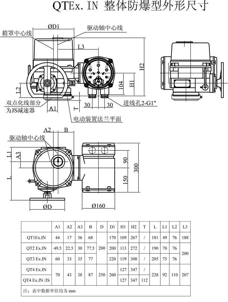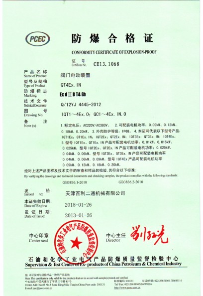 QT1~QT4型部分回轉閥門電動裝置是我公司最新研制的換代型產品。適用于控制蝶閥、球閥、旋塞閥等做90°回轉的閥門。該產品替代同規格的QB系列產品,體積小、重量輕、具有高效率、高可靠性、高防護性能、低噪音等特點。可現場操作,也可遠距離控制。可廣泛用于石油、化工、發電廠、水處理、造紙等各行業。該產品的防護等級為IP67,隔爆型產品(型號中有Ex)的隔爆等級為dⅡBT4。