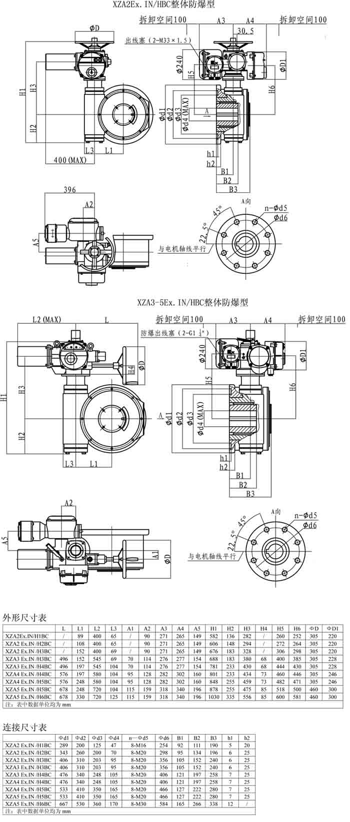 XZA-HBC整體防爆型產品外形及連接尺寸