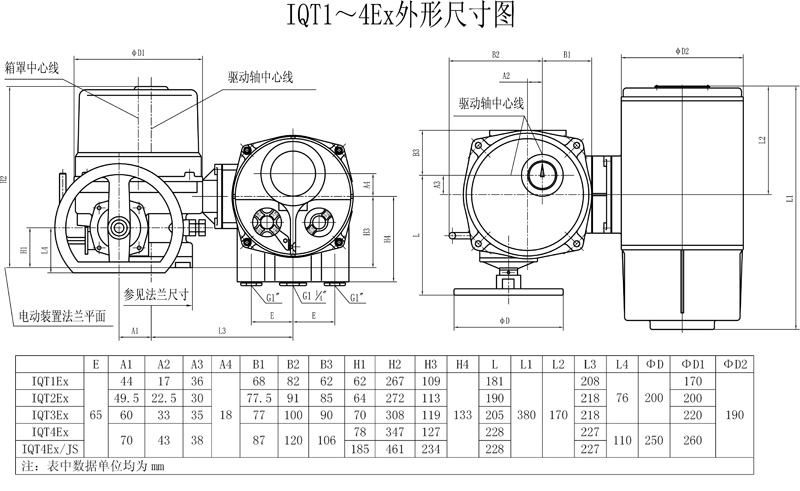 IQT系列智能型電動執(zhí)行機構(gòu)是我公司最新研制的具有完全自主知識產(chǎn)權(quán)的新一代智能化控制產(chǎn)品。其采用超大規(guī)模的模擬和數(shù)字混合集成芯片進行設(shè)計,組成SOC系統(tǒng)。使得精確控制與高性能實現(xiàn)完美結(jié)合,其中設(shè)置的功能涵蓋了用戶對此執(zhí)行機構(gòu)的所有技術(shù)要求。IQT系列為部分回轉(zhuǎn)型,輸出轉(zhuǎn)矩范圍50N.m12000N.m