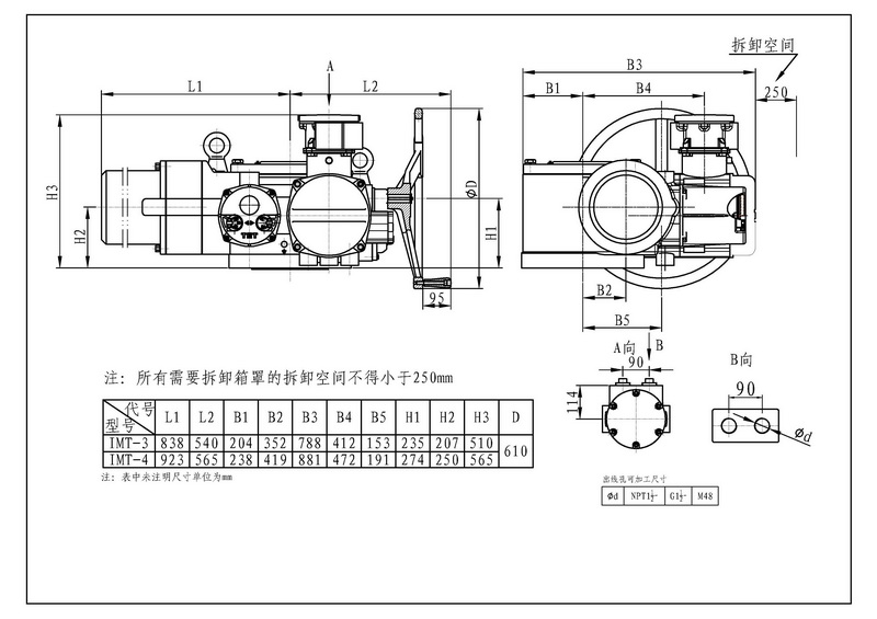 IMT-04~4 GB法蘭與牙嵌連接輸出軸各部尺寸