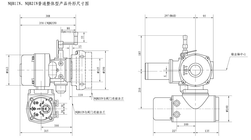 NQB1 NQB2 電動裝置在繼承QB1QB2 優點的同時又增設了產品的使用功能,并且改進了控制機構。通過改型設計的 NQB1NQB2 電動裝置不僅提高了整體性能并且更實用、可靠。 NQB1 NQB2 電動裝置的定位仍為經濟型,它適用于小口徑球閥、蝶閥、旋塞閥等閥瓣工作中90°回轉閥門和類似機構的控制。該產品與閥門組合后可廣泛地應用于石油、化工、電力、市政、冶金、食品、輕工等工業領域的管道控制系統。